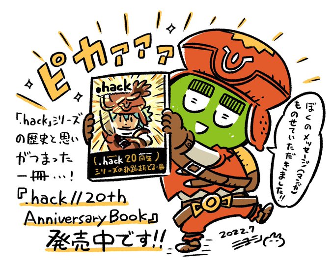 おはようございます(=ΦωΦ=)。7月20日(水)。博多の天気は晴れ。ついに『.hack//20th Anniversary Book』発売ですね!『.hack』シリーズの思いが凝縮された1冊!僭越ながらぼくのメッセージ(マンガ)も掲載されて感激です!皆様よろしくお願いいたします!!! #dothack #ドットハック #dothack20th