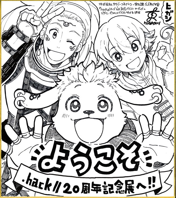 本日から開催されている『.hack//20周年記念展』のウェルカム色紙を描かせていただきました!入口に飾っているそうなので会場でご覧いただけると嬉しいです!記念展、是非楽しんでください~~🥳 #dothack #ドットハック #dothack20th twitter.com/dothack_cc2/st…