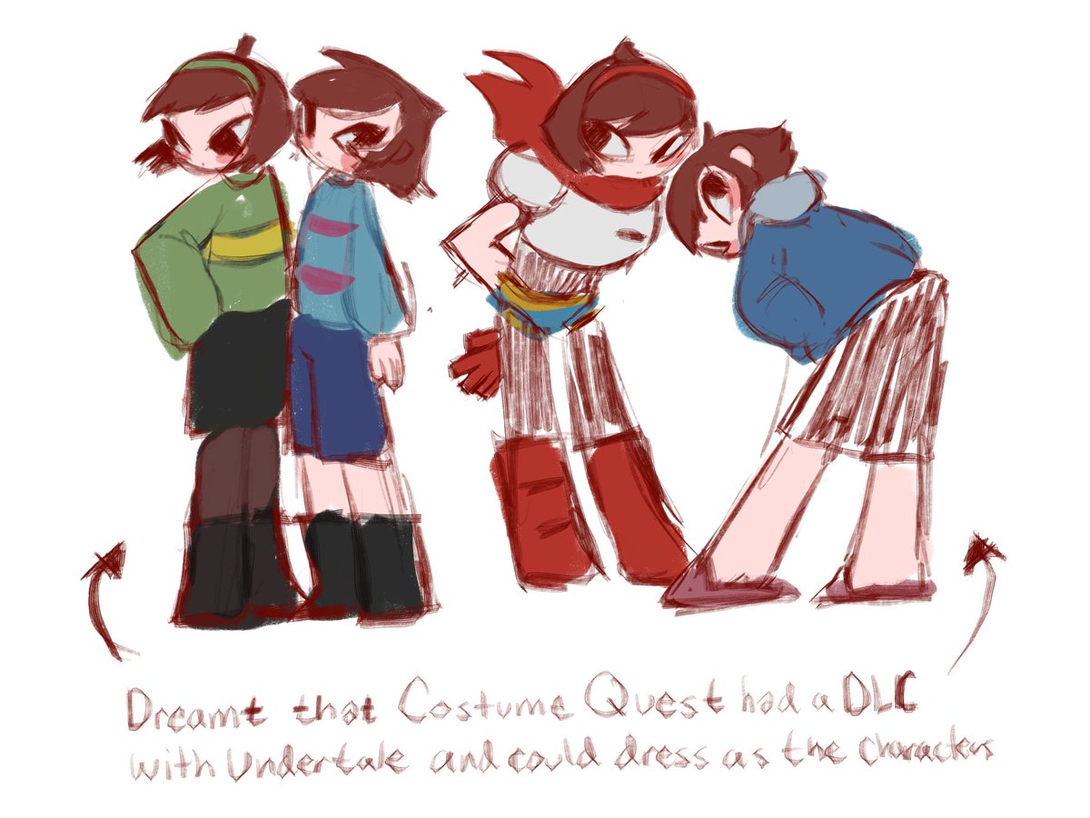 Had a dream that Double Fine’s Costume Quest had a collab dlc with Undertale and changes #doublefine #art #fanart #costumequest