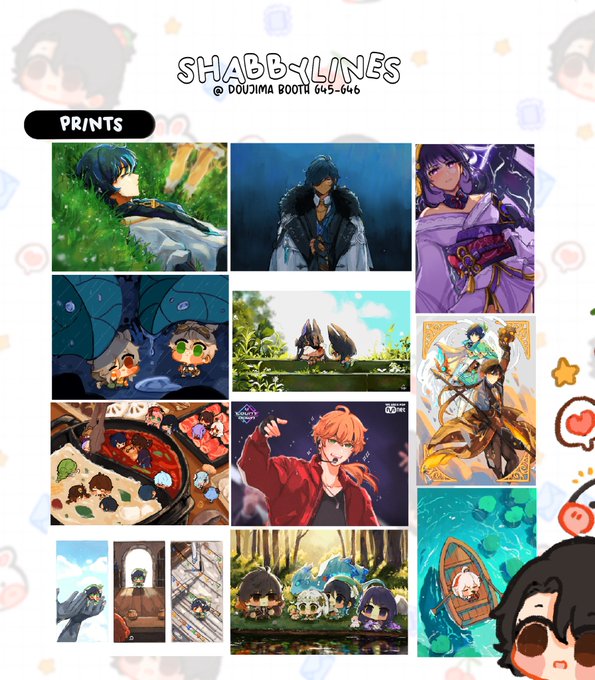here’s my mini catalogue for doujima! unfortunately i won’t be there in person ;-; but my friends are kindly taking some of my genshin prints and stickers with them so please do visit our booth @ G45-G46! #doujima2023 #doujimasg