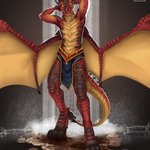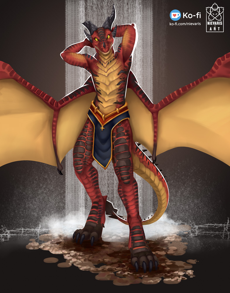The fountains of Suramar are the perfect place for a Drac to relax <3 #dracthyr #wow #worldofwarcraft #dragon #dragons #furryart #furryartwork #scaley #anthroart #furryartist #commissionsopen #opencommissions