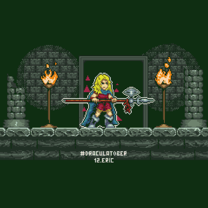 Mais um dia, mais uma participação no @draculatober! Hoje é dia 12, dia de Eric Lecarde. #pixelart #castlevania #draculatober
