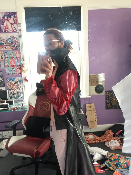 Mihawk progress! I think faux leather was a good choice, still need to paint the sleeves (lining is currently pinned on) and the collar. #Mihawk #Mihawkcosplay #DraculeMihawk #Cosplay #CosplayTest #Onepiececosplay #Onepiece