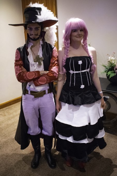 What is cosplay without some foolishness? You can't just put your shoes up on the table like that. Perona is the ever wonderful @Feirdris who always brings the joy. #Cosplayer #Cosplay #Onepiececosplay #Onepiece #Perona #PeronaCosplay #MihawkCosplay #Mihawk #DraculeMihawk
