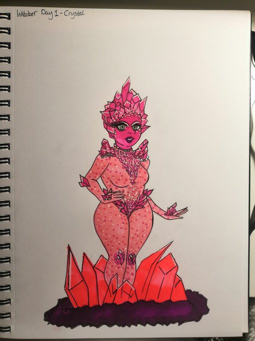 Inktober Day 1-Crystal ✨ Fanart of @ShadyLawrence beautiful Stoned on the Runway look! 💜 #Inktober #inktober2021 #crystal #DragRace #DragRaceUK