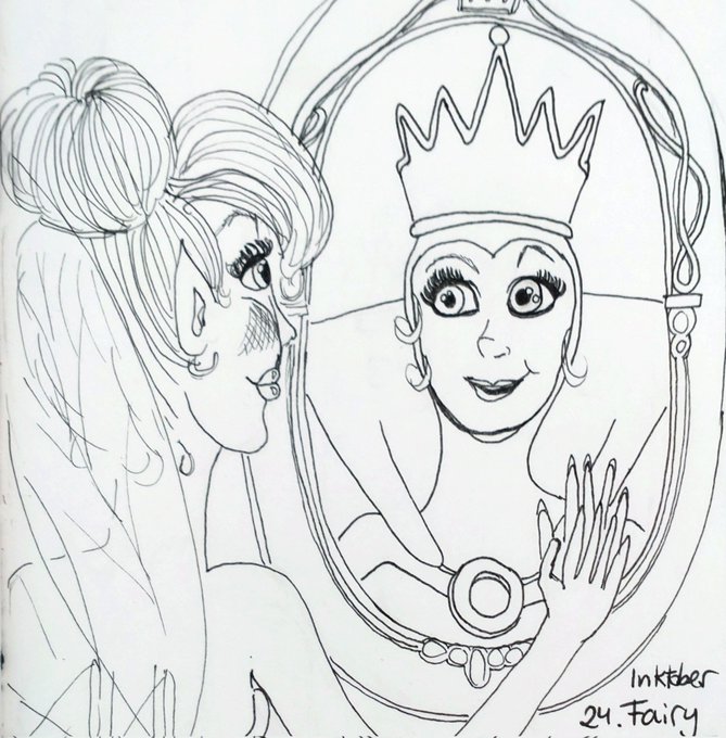 across... What do you see? Maybe this will help: "Mirror, mirror, on the wall, who is the fairiest of them all?" #drawme - 24. Fairy #drawmeanniething #woordbeeld #wordsbuildbyanne #onceuponatime #evilstepmother #tinkerbell #magicmirror #darkmirror #blackfairy #inktober