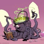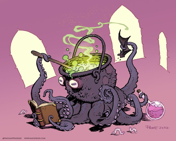 Behold! The mighty, magical ministry of the "Cauldropus"! Drawn for @megsmashables Friday Mash Challenge. FMC 2022 No. 35 - Octopus + Cauldron. #megsmashables #mashable #mashables #fridaymashchallenge #drawingchallenge