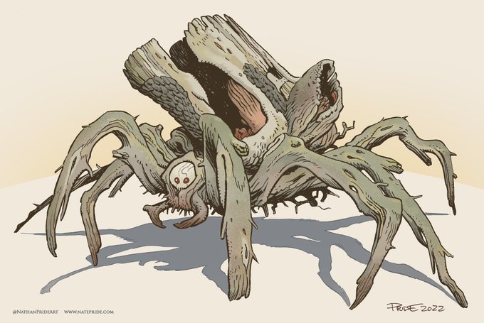 Final colors for the "Stump Spider" drawn for @megsmashables Mashaween Day 26 "Dead Tree". Spider + dead tree. #megsmashables #mashables #mashaween22 #illustration #monster #spider #tree #drawingchallenge #nathanprideart