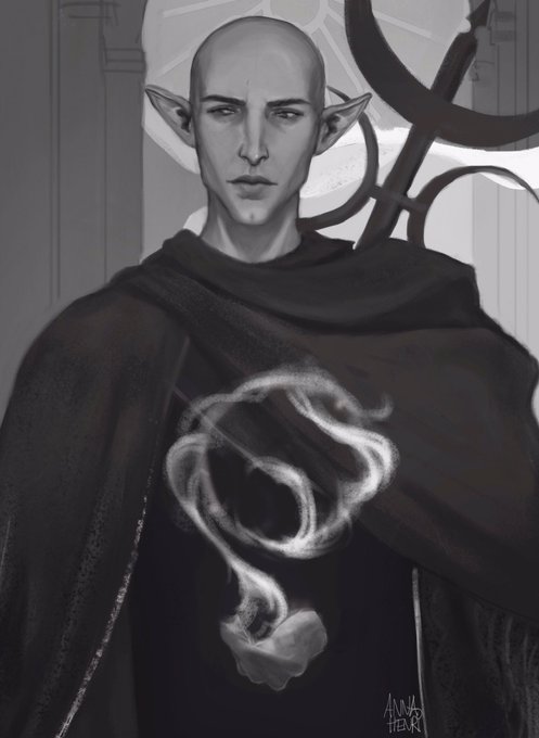 Trying my hand with Solas in the #DragonAgeAbsolution style <3 def fun. wanna try some more characters lol #DragonAgeArt #solas #dreadwolf #artists #HumanArtist #digitalart
