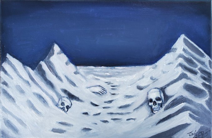death beach #art #traditional #traditionalart #original #watercolor on canvas with paint and watercolor brush pens. #dreamart based on a dream I had in April of 2021. #surreal #creepy #painting #skull used pics as references.