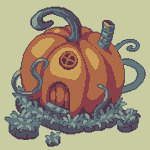 A simple #PumpkinHouse for @Pixel_Dailies made with #dreamscape8! #pixelart #pixel_dailies #ドット絵 #aseprite