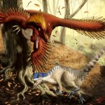 Adult deinonychus and a gliding baby deinonychus #deinonychus #dinosaurs #dromaeosaur #raptor #paleoart