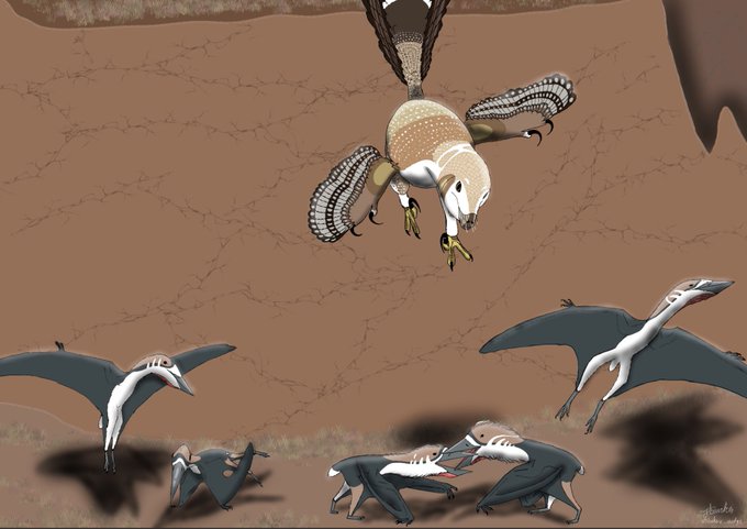 #Velociraptor hunting in the cliffs #azhdarchid #pterosaur #velociraptorine #dromaeosaur #paleoart