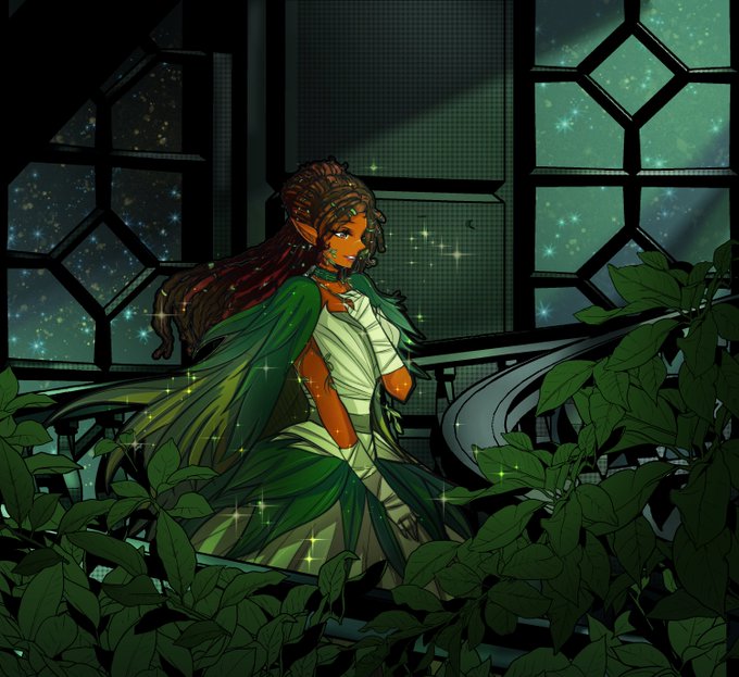 Art of Vela, @kmartmithril [instagram]'s character! Their druid was so cool, I love their character designs so much! #artistsontwitter #dndart #dndartist #drawing #anime #animeart #elfgirl #elfart #druidart #illustration #animedruid #animeelf