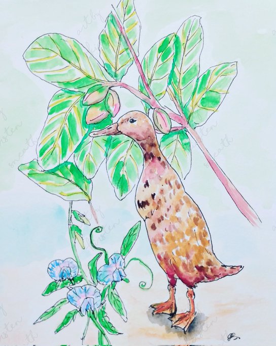 Happy #AnimalAlphabets Monday! Here is my I for Indian runner duck with some Indian almond fruit and some Indian peas. Hope you have a great week! @AnimalAlphabets #indianrunnerduck #indianalmondfruit #indianpeas #animalsandfood #birdsandfood #illustrations #duck #breedsofanimals