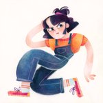 Character for #facetober challenge on IG. Prompts: Grumpy • Dungarees • Black Eyes. #illustration #characterart #illustrationartists #gouache #grumpy #dungarees #outfit