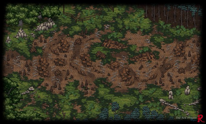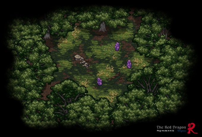 A forest clearing. Made in 6 min 32 sec using #dungeondraft and my upcoming #pixelart #ドット絵 asset pack.