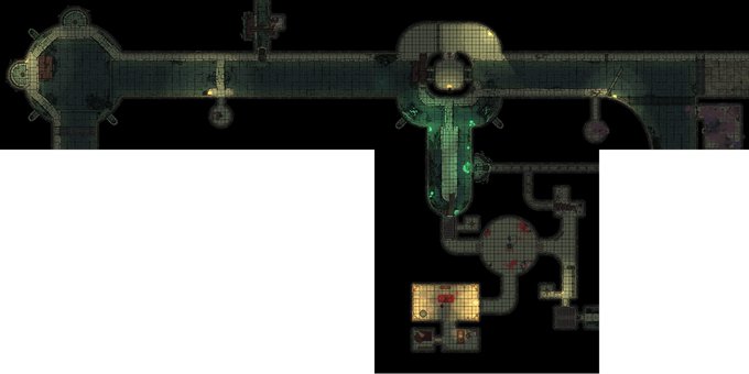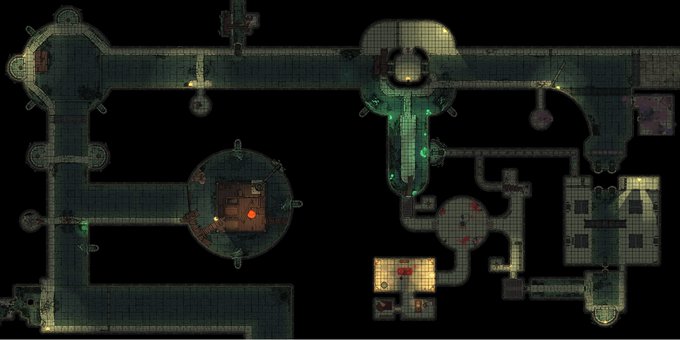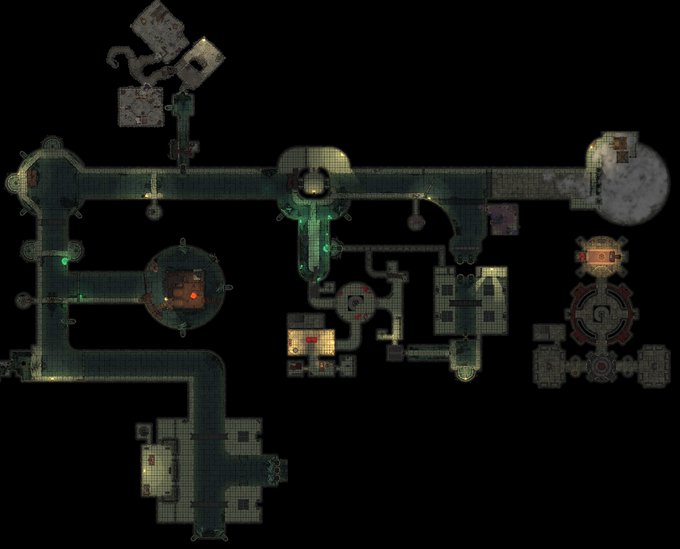 Ok. Updated version of my sewer level and some sub-areas of Zhentil keep underbelly. If everything goes smoothly, party of freshly baked (1st levels) adventurers would descent into the Underdark. #TTRPGs #TTRPGRising #Dnd5E #Dndart #Dungeondraft