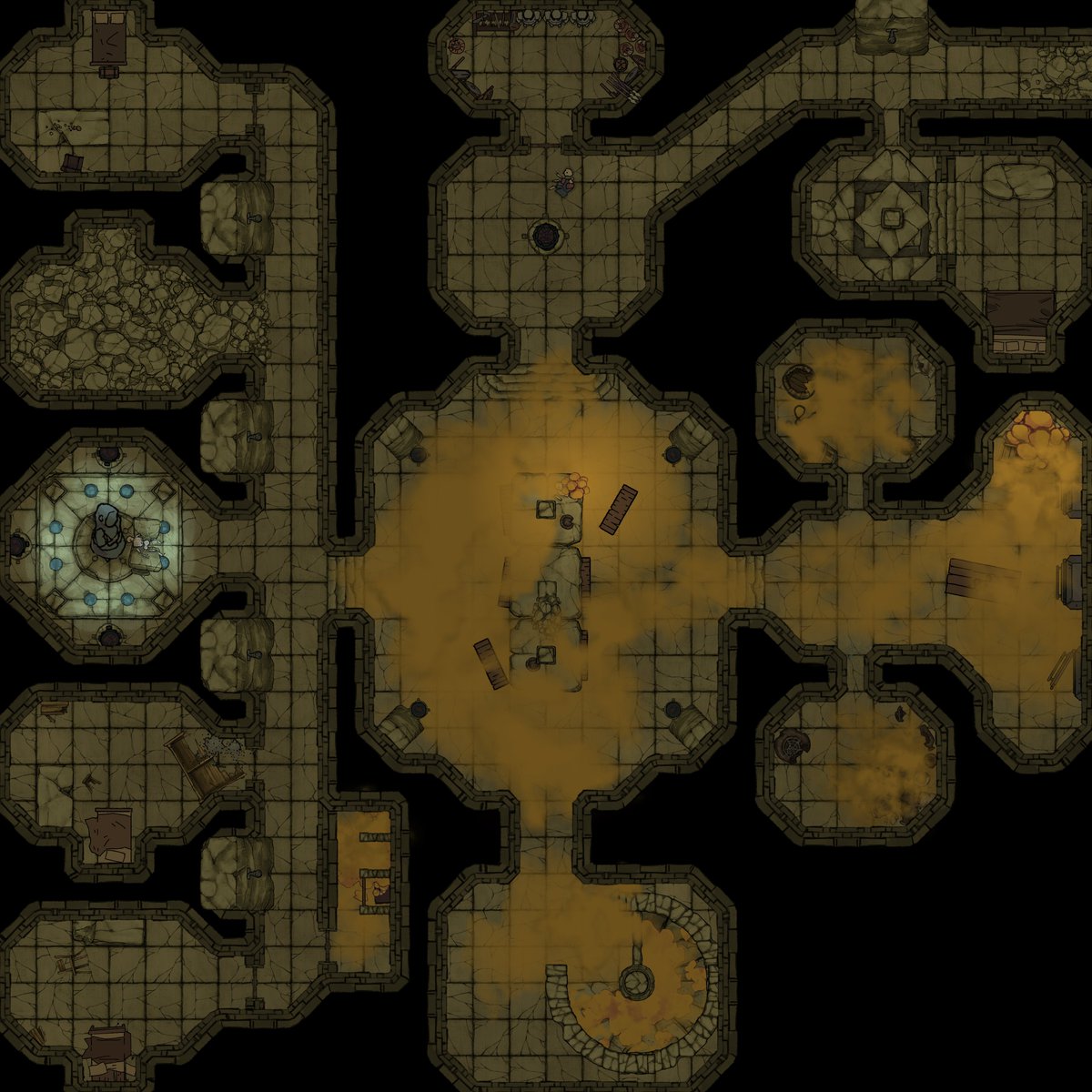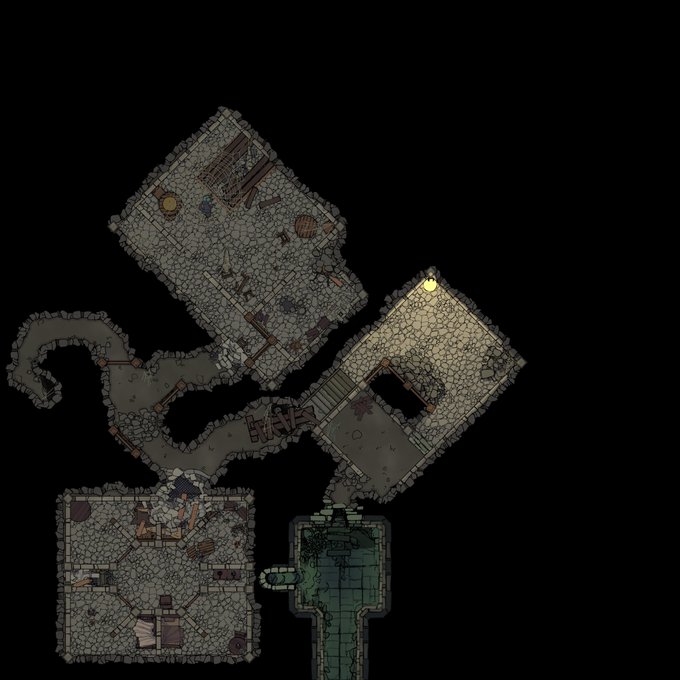 Whew. Managed to make 3 battlemaps during last 16 hours and also compiled then into one global map of a dungeon for first game session. Here it is! #TTRPGs #TTRPGRising #DnD5e #dndart #Dungeondraft