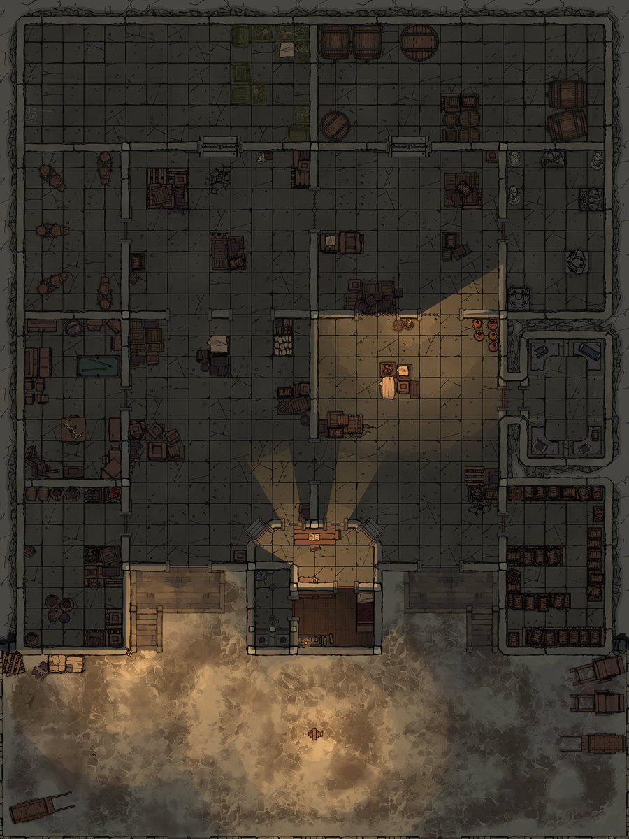 Cliffrift's Trade House hired party to investigate recent disappearances of workers from one of their warehouses. Would party manage to unravel this mystery? #TTRPGs #TTRPGRising #Dnd5E #Dndart #Dungeondraft