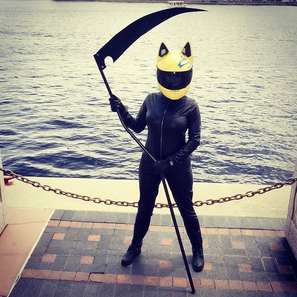 Celty was my next cosplay I made. @mightymarkprops made the helmet and scythe for me I made her for Metrocon 2016!! Havnt worn her in ages but such a favorite still. #cosplay #cosplayer #durarara #celty #celtysturluson #durararacosplay #anime