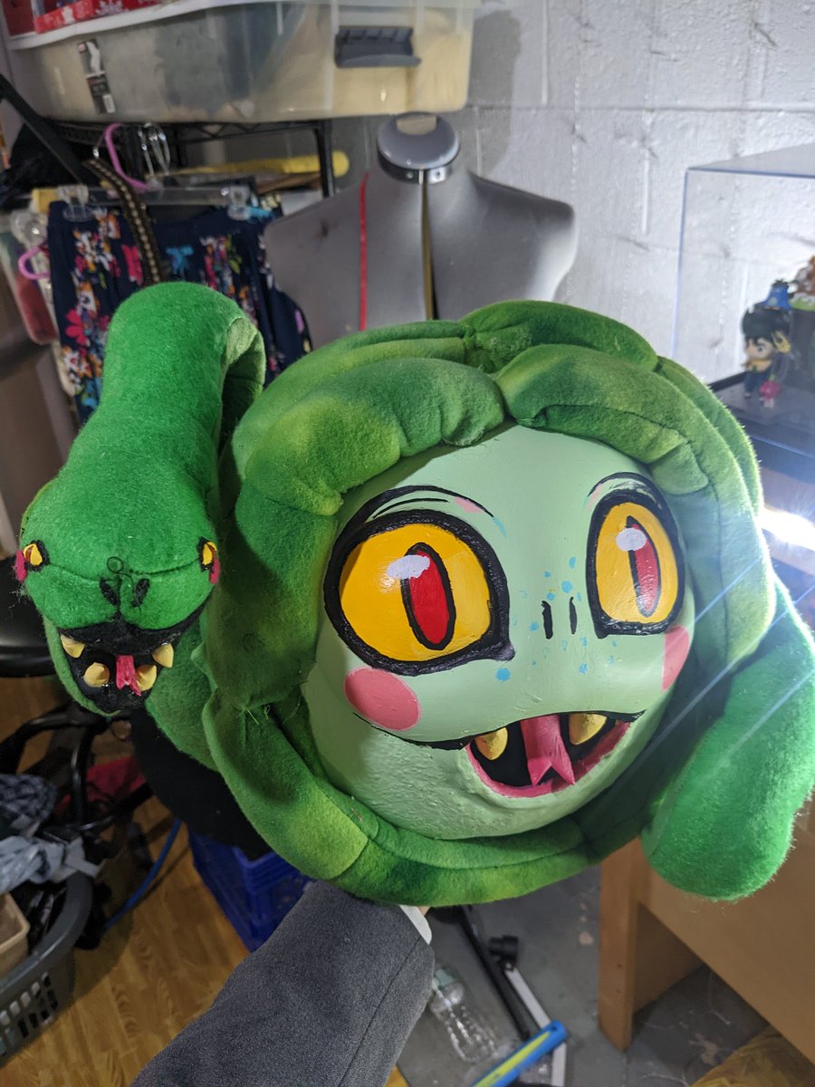 Also Dusa update. One more snake left! She will also be at @NY_Comic_Con on Saturday. No, I am not wearing the head. I'm carrying it on a pole. #dusa #supergiantgames #hades #hadescosplay #dusacosplay #nycc #nycc2022 #dusahades #cosplay #cosplaywip