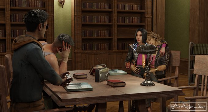 David and Yui got bored of Yun's and Dwight's talking so they both felt asleep :0 #yunyui #yuikimura #yunjinlee #deadbydaylight #dbdfanart #DavidKing #dwightfairfield #Kingfield