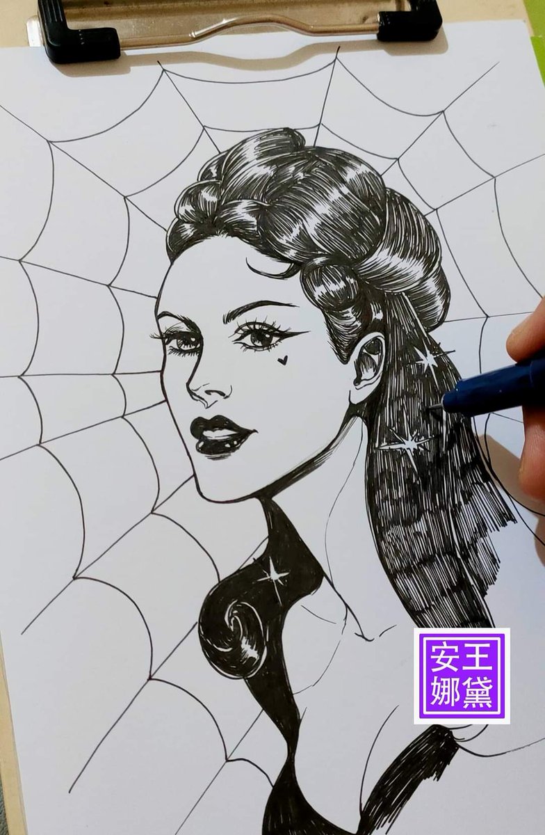 The black widow ink 🖤🖤🖤 --- #inkdrawing #ink #theblackwidow #vanessahudgens #dyanawangart #fanart #drawing #inktober #inktober2022