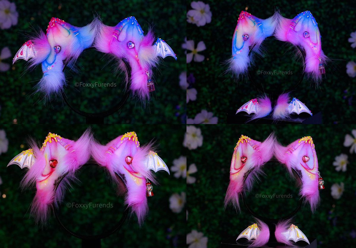 🍬✨ℭ𝔞𝔫𝔡𝔶 ℑ𝔪𝔭𝔰✨🍬 • OOAK & available for adoption this Monday 29th 7pm EST; FoxxyFurends.com. • With handmade, removable and wearable holo candy sprinkle wings! • 🍬Cotton Candy Imp✨🦇 🍋Lemon Sorbet Imp✨🦇 #cosplay #furry #alternative #ears #neko