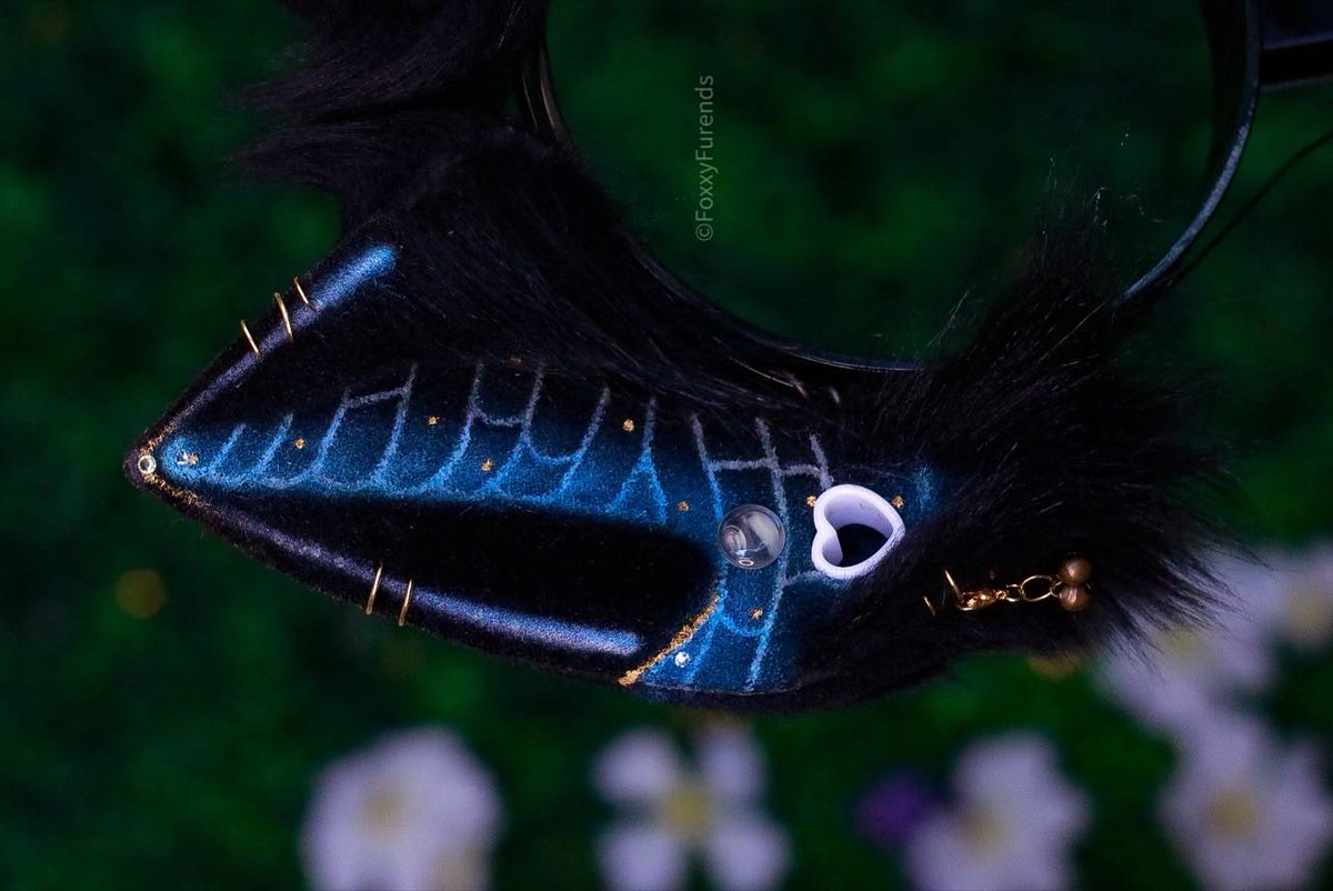 ⭐️💙Starry Ouija Wolf💙⭐️!! OOAK and looking for a home at FoxxyFurends.com!! • Handmade with love! Stars are removable/wearable squishy clips!! EEEE so cute! • #cosplay #cosplayears #animalears #otaku #furry #wearableart #cosplayears #ears #furryears