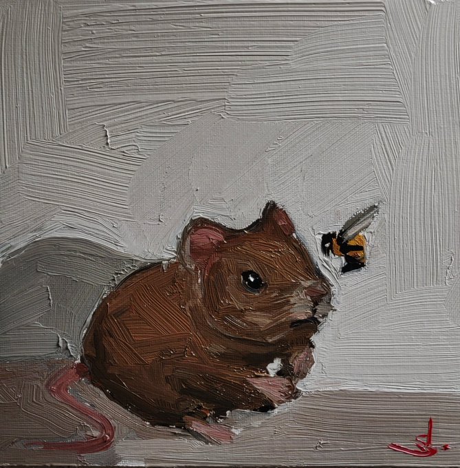 The Mouse and Bee 8 X 8 Inches Oil on Canvas Board Available #impressionism #oilpainting #MondayMotivation #homedecor #ukartist #fineart #artcollector #painting #wallart #shop #ebayart #ArtistOnTwitter #bees