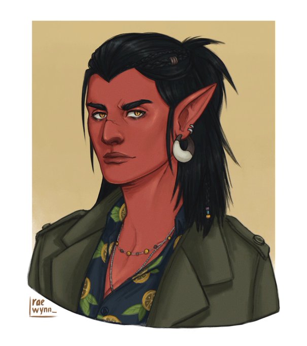 Khalu carries herself with an air of ancient nobility. Being able to trace her lineage back to the sorcerer queens and kings of Ohr Kel, she is better than you, and her horns prove it. #dndcharacter #dndcharacterart #DnD #dndart #characterdesign #oc #wizardsofthecoast #Eberron