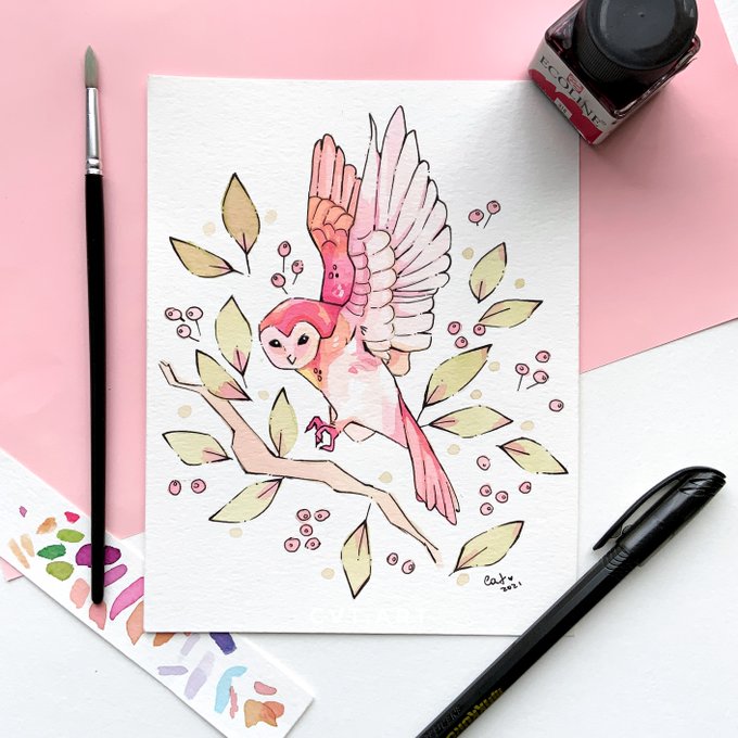 Day 14: wings I wanted to make something with this color palette again ~ Prompt from madie_arts list on IG! #inkpainting #Inktober #inktober2021 #inktober2021day14 #owl #art #ecolinewatercolor #ecolineink #WINGS #cvtart