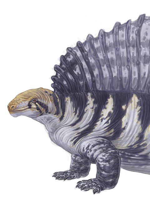 Color #workinprogress for #Edaphosaurus pogonias is going well, here's a closeup of the work so far. #wip #drawing #painting #paleoart #paleontology #sciart #science #digitalart #digitalillustration #illustration #art #artistsontwitter