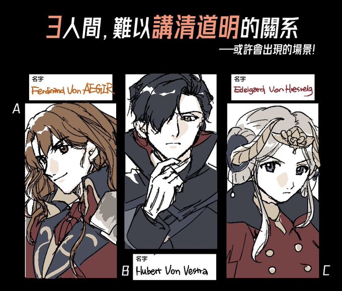 #FE3H #edelferdibert I did the triangle relationship drawing challenge for Ferdinand, Hubert and Edelgard🧡🖤❤️