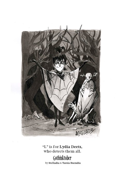 We're back! Gothinktober Day 13: “L" is for Lydia Deetz. Art by me, words by @TarsiaBuendia Original soon for sale! 🖤 #gothinktober #inktober #gothic #edwardgorey #beetlejuice #bitelchus #lydiadeetz #animation