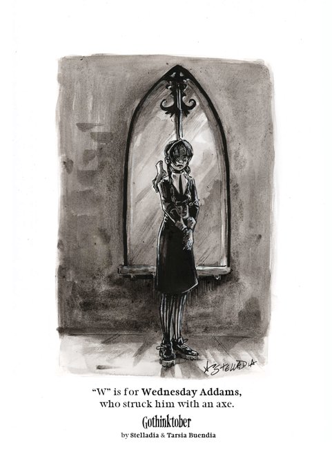 @TarsiaBuendia Gothinktober Day 24: “W" is for Wednesday . Art by me, words by @TarsiaBuendia Original soon for sale! 🖤 #gothinktober #inktober #gothic #edwardgorey #addamsfamily #wednesdayaddams #wednesday #miercolesaddams #familiaaddams