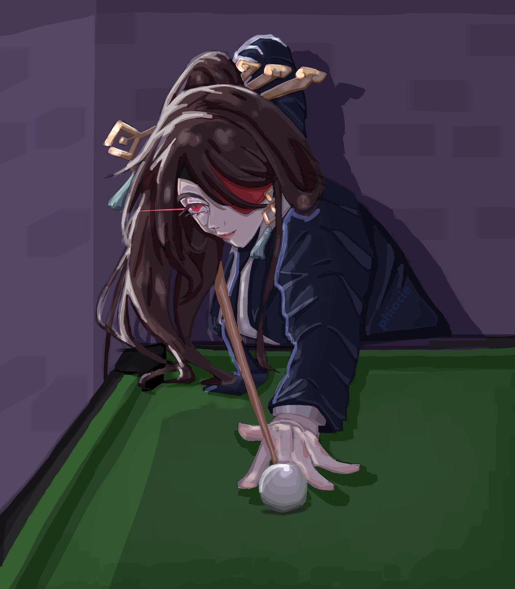 lucky ningguang . Beidou playing Eight-ball in a suit . #art #fanart #digitalart #genshinimpact #genshinimpactfanart #beidou #pool #eightball #suit