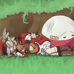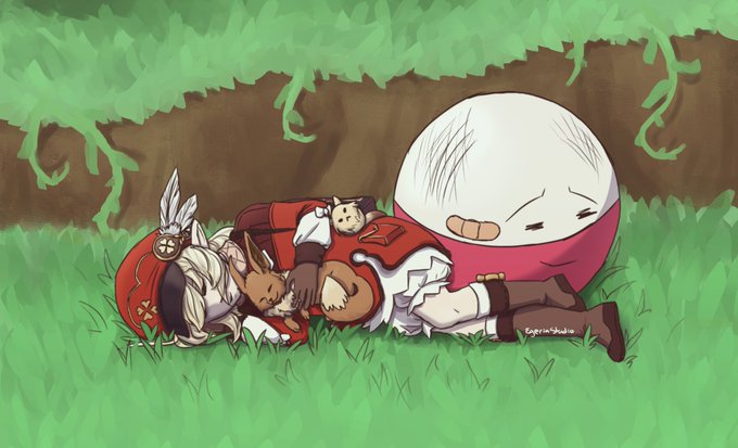 Nap time after a day of fish blasting #GenshinImpact #Pokemon #crossover #genshinimpactfanart #klee #electrode #Eevee #digitalart #DigitalArtist