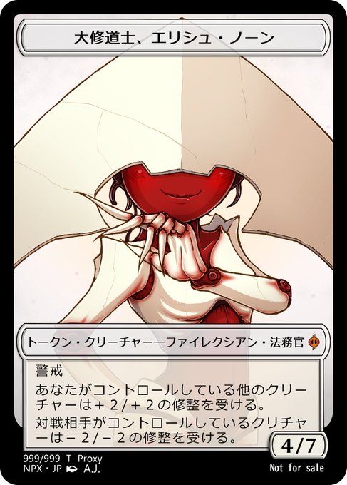 超ニッチなトークンを作りました! 大修道士、エリシュ・ノーンを多勢の兜でコピーした時に生成される伝説ではないエリシュ・ノーン・トークンです。 A.J.の白単EDHデッキにノーン様と兜は入ってるけど一度も成功した事がない🤣 #MTG #mtgfanart #Phyrexia #eleshnorn #エリシュ・ノーン twitter.com/janadonovel/st…