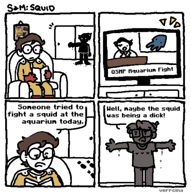 Charlie would fight a squid, or maybe he already has… (traducción en alt) #misclickduo #slimeriana #qsmp #qsmpfanart #slimeciclefanart #elmarianafanart