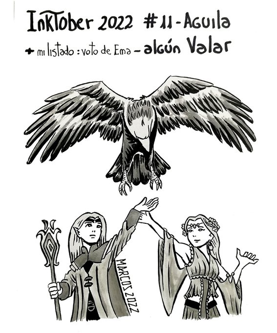 Inktober 2022 - Día 11: Aguila. Mi hermano votó por el dibujo de un Valar, así que combiné el día con mis versiones de Manwë y Yavanna, creadores de las águilas en el universo Tolkien. Disfruten! ^^ #inktober #inktober2022 #elpinceldemarcos #tolkien #aguilas #manwë #yavanna
