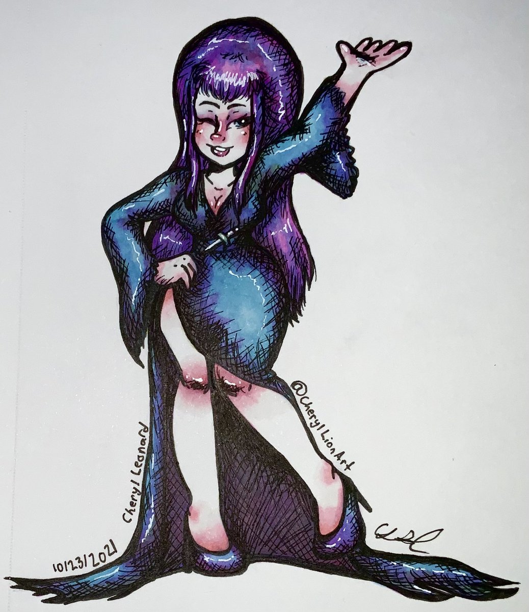 Another #Elvira doodle since I rewatched the movie this past Saturday. I love how much personality is brought to the character. #ArtistOnTwitter #artistsoftwitter #halloween #fanart #elviraart #inktober #inktober2021 #drawtober #drawtober2021 #drawlloween #drawlloween2021