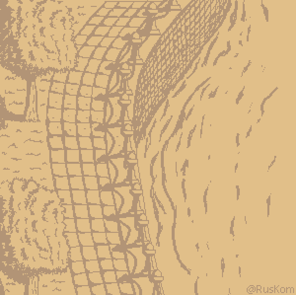 Theme: #embankment #pixelart #pixelartist #ドット絵 #aseprite #digitalart #art #pixel_dailies @Pixel_Dailies @PixelTheme #water #embankment #minimalist #minimalism #grayscale