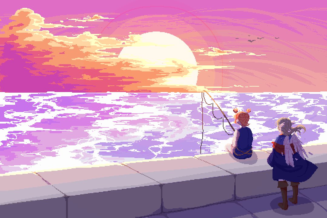 Today, the theme is #embankment and my imagination brings me to my favorite Anime. do you know friends? ⛩🏞 @Pixel_Dailies fun works ♨️ #pixelart #pixel_dailies #ドット絵