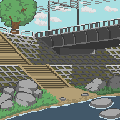 ある土手 A random embankment found in japan #embankment #pixelart #pixel_dailies #ドット絵 #毎日ドット絵 @Pixel_Dailies #やがて君になる