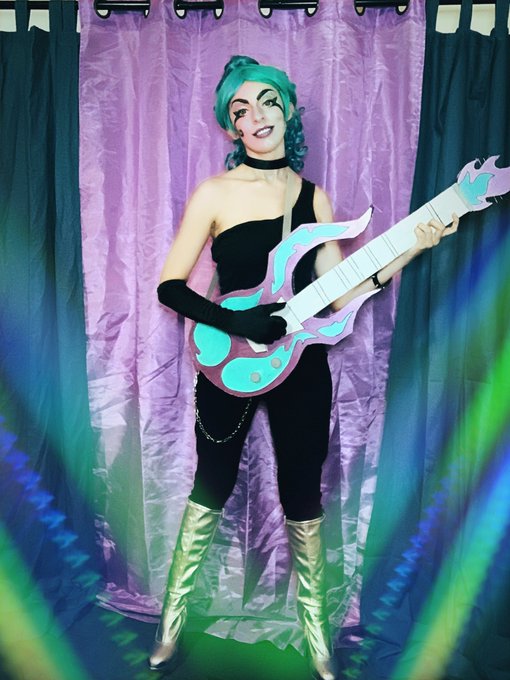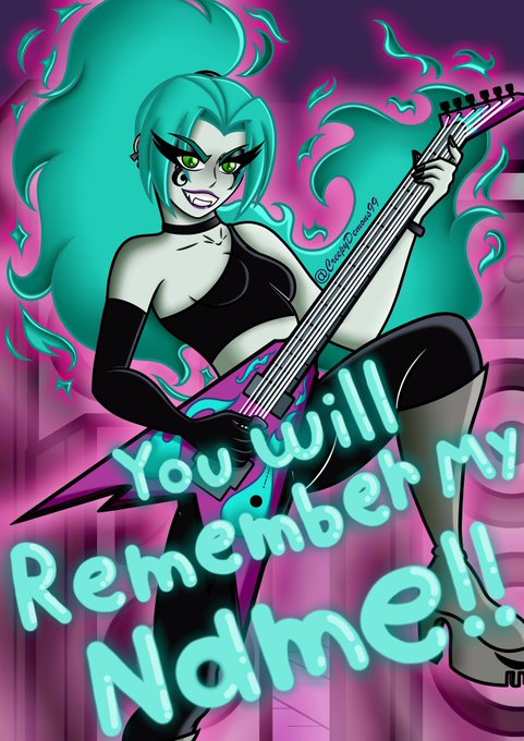 Corona Rouge (OC) making cosplay of Ember McLain from Danny Phantom #OC #DannyPhantom #EmberMcLain #cosplay #DigitalArtist #digitalart #art #spooky