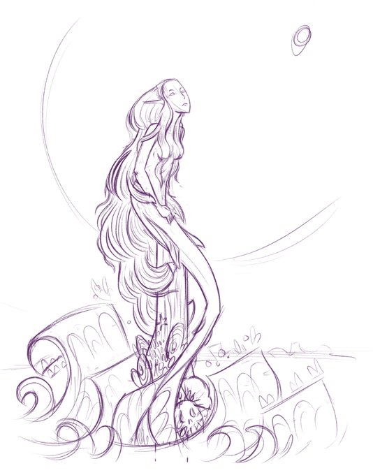 Mermaid coming up soon. Trying to decide how to execute it. #mermaid #emilyzelaskoart #fantasyart #illustration #sketch #workinprogress #mermay #muthart #ocean