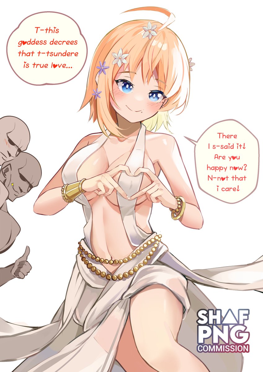 I received this super cute art, thank you so much! I'm cosplaying a goddess? But I'm not tsundere, don't get the wrong idea!! It was drawn by @shafpng! #emivt_art