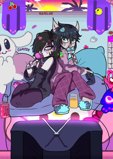 Martin and Norman gaming. #medibang #art #drawing #oc #emo #artistsontwitter #digitalart #Bumblebeegirl #anime #cute #kawaii